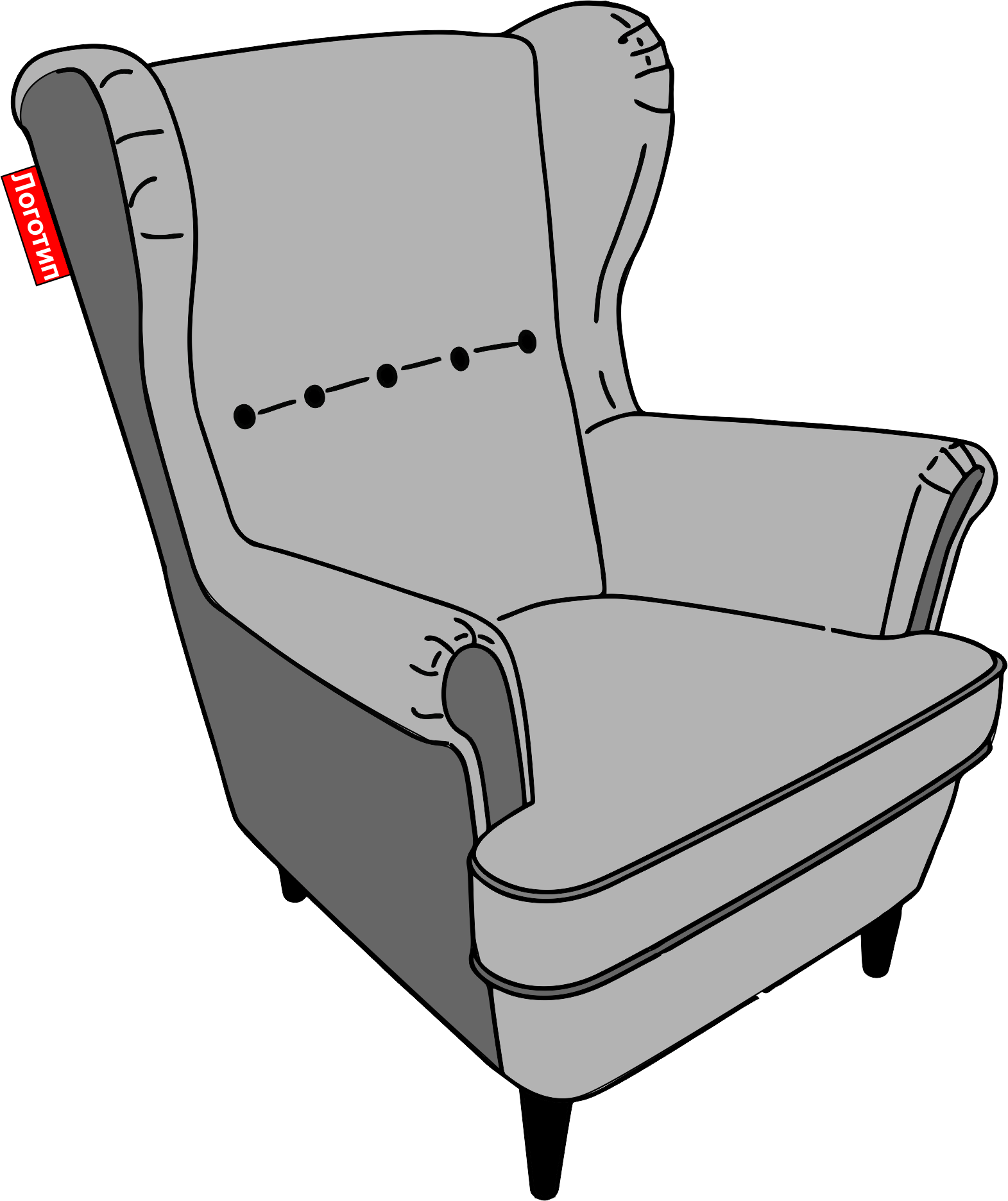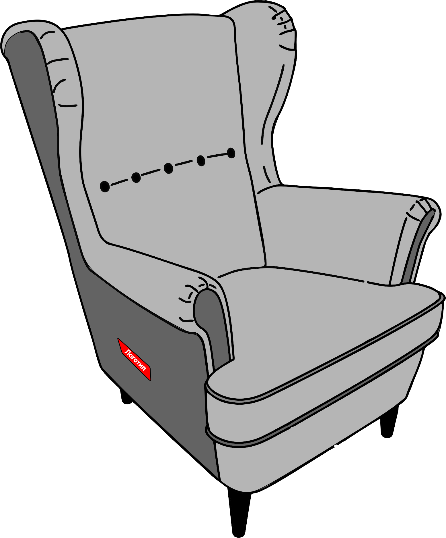 Этикетка для мебели с логотипом, также как и этикетка-флажок, изготавливается из жаккардового, тканевого печатного или пластикового материалов. Прикрепляется на спинку, низ, боковину изделия.