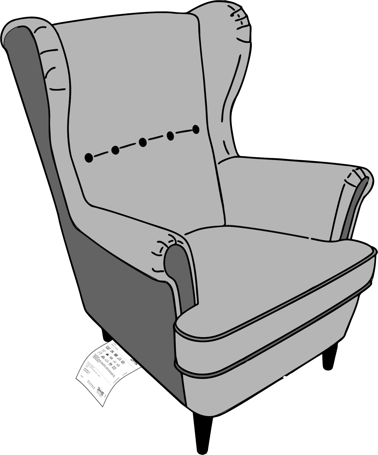 Этикетка для мебели с символами по уходу и информацией о производителе изготавливается методом печати из тканевых (сатин, нейлон) или жаккардовых материалов. Методы крепления — вшивные или на клеевой основе. Может содержать следующую информацию: