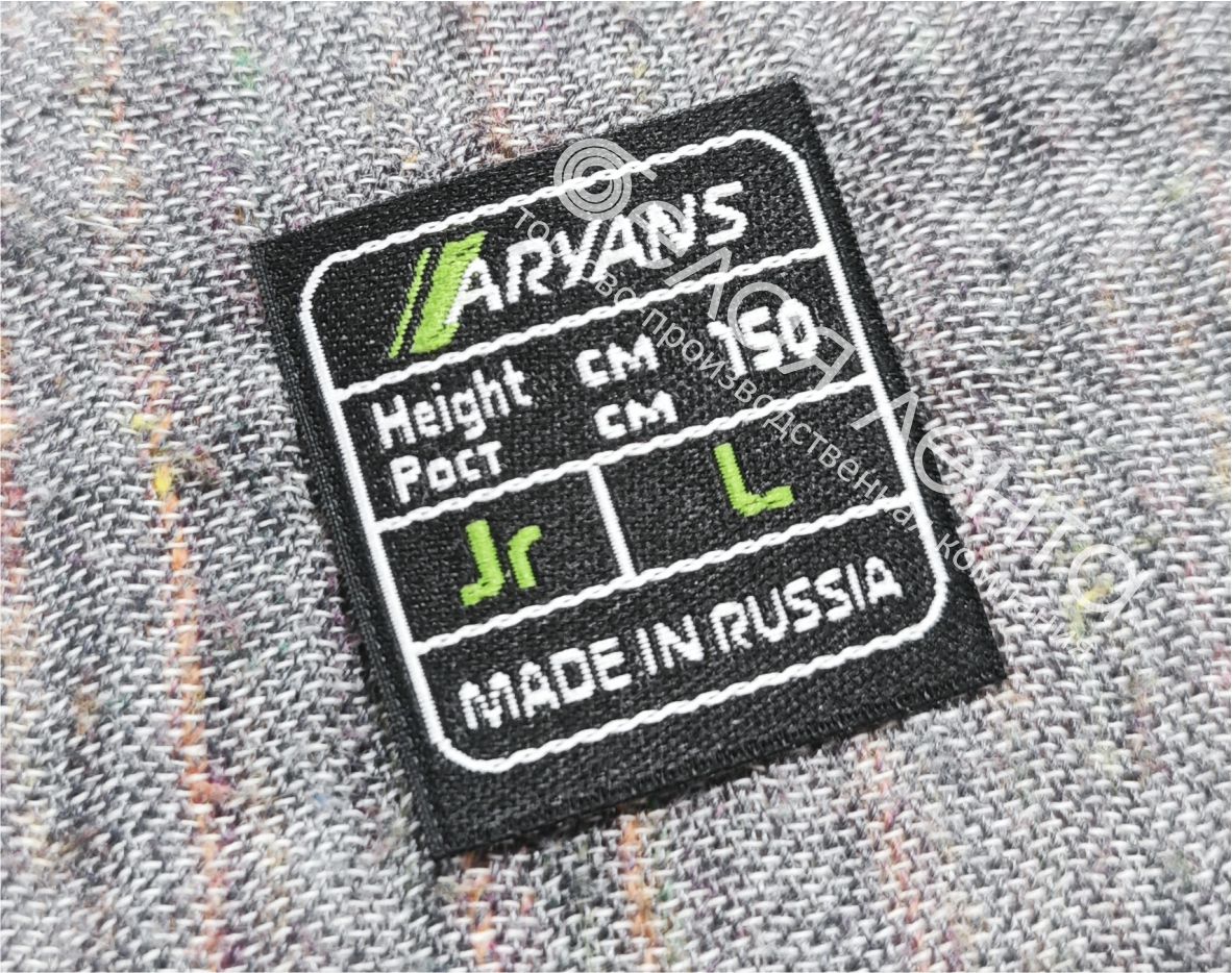 Изготовление осуществляется в Иванове. Используем проверенное европейское оборудование и качественные материалы, что позволяет добиться чёткой проработки деталей, стойких цветов и тактильно приятной текстуры. Наша команда сопровождает заказ от разработки макета до выпуска тиража, включая отшив пробников и согласование посадки этикетки на изделие. Мы работаем как с массовым производством, так и с частными брендами, которым важно подчеркнуть стиль и аккуратность оформления.